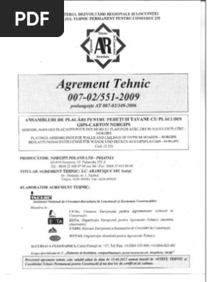 Documentatie Agrement Tehnic Pentru Pereti Rezistenti La Foc Din Gips Carton 345411 Graduo
