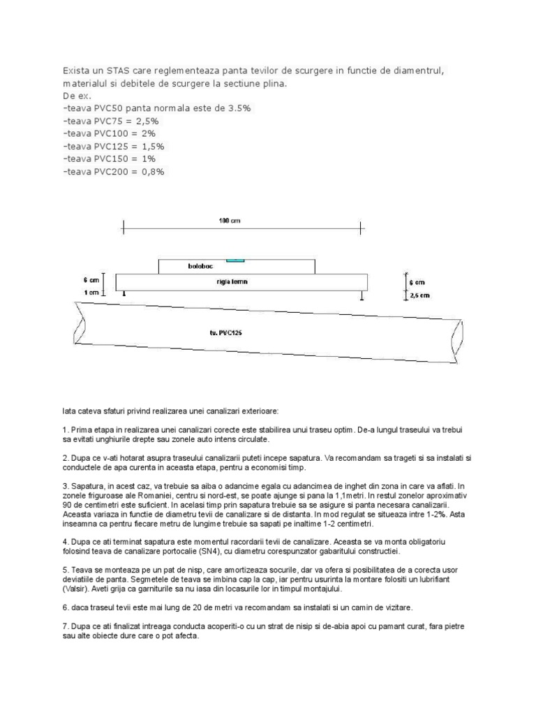 Panta De Canalizare Menajeră Intr O Fosa Septică Panta Minimă De Canalizare